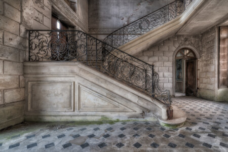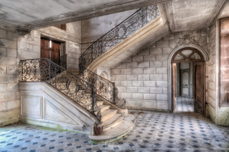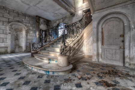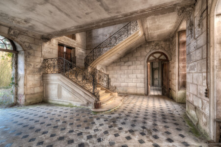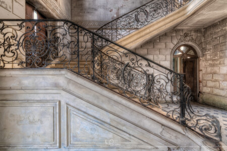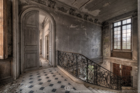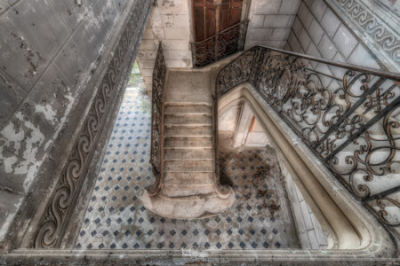 Helaas is de trap een paar jaar terug besmeurd met blauwe verf door vandalen en ook de wandtapijten waren tijdens ons bezoek ook al voor een deel vernield. Er is geprobeerd om de blauwe verf te verwijderen, waarschijnlijk door de eigenaar/beheerder maar jammer genoeg is dit niet helemaal gelukt. Ook zijn er renovatiepogingen gedaan, op de eerste verdieping waren o.a. de vloeren gestript en op de benedenverdieping waren wat gaten in de muren gehakt, o.a. in de grote entree waar de beroemde en super mooie trap zich bevindt. Een deel van het dak is bedekt met een zeil omdat deze lekt.